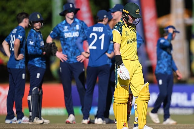അണ്ടർ-19 ക്രിക്കറ്റ് ലോകകപ്പ് സെമി ഫൈനലിൽ നിലവിലെ ചാമ്പ്യന്മാരായ ഓസ്ട്രേലിയയെ 27 റൺസിന് പരാജയപ്പെടുത്തി ഇംഗ്ലണ്ട് ഫൈനലിൽ പ്രവേശിച്ചു. സിംബാബ്വെയിലെ ബുലവായോയിൽ നടന്ന ആവേശകരമായ പോരാട്ടത്തിൽ ഓസ്ട്രേലിയൻ ക്യാപ്റ്റൻ ഒല്ലി പീക്കിന്റെ (100) വീരോചിതമായ സെഞ്ചുറി പാഴായി.