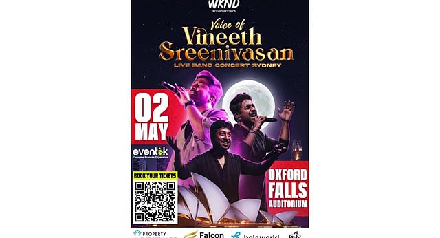 WKND എന്റർടൈൻമെൻസിന്റെ ആഭിമുഖ്യത്തിൽ പ്രശസ്ത ഗായകനും സംവിധായകനും അഭിനേതാവുമായ വിനീത് ശ്രീനിവാസന്റെ ലൈവ് ബാൻഡ് കോൺസേർട് 'വോയിസ് ഓഫ് വിനീത് ശ്രീനിവാസൻ' ഷോ മെയ് രണ്ടിന്. സിഡ്നിയിലെ Oxford Fall ഓഡിറ്റോറിയത്തിൽ നടക്കുന്ന പരിപാടിക്ക് പരിമിതമായ ടിക്കറ്റുകൾ മാത്രമാണുള്ളത്. കാണികൾക്ക് സംഗീതാർദ്രമായ വിരുന്ന് തന്നെയായിരിക്കും കാത്തിരിക്കുന്നതെന്ന് സംഘാടകർ പറയുന്നു. ടിക്കറ്റുകൾ ബുക്ക് ചെയ്യാനായി ഇവിടെ ക്ലിക്ക് ചെയ്യുക.