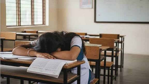 സംഭവത്തിന്റെ തലേദിവസം രാത്രി മുഴുവന് ഹൃദ്രോഗം ബാധിച്ച് ഗുരുതരാവസ്ഥയിലുള്ള അമ്മയെ ശുശ്രൂഷിച്ചതിന്റെ ഉറക്ക ക്ഷീണവുമായാണ് വിദ്യാര്ത്ഥിനി ക്ലാസില് എത്തിയത്. ഉച്ചഭക്ഷണത്തിന് ശേഷം ഡസ്കില് തലവച്ച് മയങ്ങിപ്പോയി. ക്ലാസിലെത്തിയപ്പോള് വിദ്യാര്ത്ഥിനി മയങ്ങുന്നത് ശ്രദ്ധയില്പ്പെട്ട അധ്യാപിക കട്ടിയുള്ള പുസ്തകം ഉപയോഗിച്ച് കുട്ടിയുടെ തലയ്ക്ക് അടിക്കുകയായിരുന്നു. തലയ്ക്ക് തരിപ്പും അസ്വസ്ഥതയും അനുഭവപ്പെട്ടെങ്കിലും കുട്ടി ഈ വിവരം വീട്ടില് പറഞ്ഞിരുന്നില്ല. ഞായറാഴ്ച്ച വൈകീട്ട് ആയപ്പോഴേക്കും പനിയും ശരീര വേദനയും അനുഭവപ്പെട്ടു. ഇതോടെ ഭയന്ന പെണ്കുട്ടി അധ്യാപിക ഉപദ്രവിച്ച കാര്യം വീട്ടില് പറഞ്ഞു. ഇതോടെയാണ് ചികിത്സ തേടിയത്. തലയ്ക്കകത്ത് രക്തസ്രാവമുണ്ടാകാന് സാധ്യതയുണ്ടെന്നും അതിനാല് നാല് ദിവസം പൂര്ണ വിശ്രമം ആവശ്യമാണെന്നും ചികിത്സിച്ച ഡോക്ടര് പറഞ്ഞു.