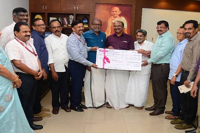 തിരുവനന്തപുരം: കെ.എസ്.എഫ്.ഇ. 2024-25 സാമ്പത്തിക വർഷത്തെ ലാഭവിഹിതമായ 70 കോടി രൂപ സർക്കാരിന് കൈമാറി. ധനമന്ത്രി കെ.എൻ. ബാലഗോപാലിന്റെ ചേമ്പറിൽ കെ.എസ്.എഫ്.ഇ. ചെയർമാൻ കെ. വരദരാജനും മാനേജിങ് ഡയറക്ടർ ഡോ.എസ്. കെ. സനിലും ചേർന്ന് മന്ത്രിക്ക് ചെക്ക് കൈമാറി. കൃഷിവകുപ്പ് മന്ത്രി പി. പ്രസാദ്, ധനകാര്യ വകുപ്പ് അഡീഷണൽ ചീഫ് സെക്രട്ടറി കെ.ആർ. ജ്യോതിലാൽ, ബോർഡ് മെമ്പർമാരായ ഡോ. കെ. ശശികുമാർ, ബി.എസ്. പ്രീത (ധനകാര്യ വകുപ്പ് അഡീഷണൽ സെക്രട്ടറി), കെ.മനോജ് (നികുതി വകുപ്പ് ജോയിന്റ് സെക്രട്ടറി) എന്നിവരും പങ്കെടുത്തു.